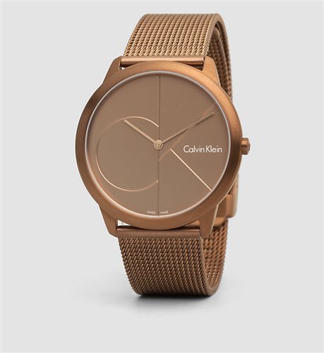 Cassa rotonda in acciaio PVD marrone diametro mm. 40,00. Corona impermeabile logata CK. Fondello in acciaio PVD nero chiuso a pressione ed impermeabile a 3 ATM. Quadrante color bronzo tridimensionale con logo CK inciso, lancette ore e minuti in metallo color bronzo rifinito lucido. Vetro minerale temperato. Bracciale in maglia Milano in acciaio PVD con fibbia scorrevole logata CK. Articolo nuovo con cofanetto e garanzia di 2 anni originali Calvin Klein.
