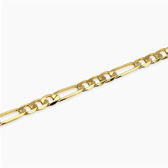 Bracciale regolabile con catena figaro in argento placcato oro 18K. • Dimensione catena: 5 mm • Misura regolabile, lunghezza da 19 a 20,5 cm • Materiale: Argento 925 • Finitura: Placcatura oro 18k