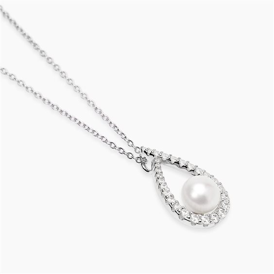 Girocollo regolabile in argento rodiato con catena rolò e pendente goccia in zirconi e perla coltivata. • Dimensione pendente: 10,8x19,7 mm • Diametro zirconi: 2 mm • Diametro perla coltivata: 6,5-7 mm • Misura regolabile, lunghezza da 40 a 45 cm • Diamensione catena: 1,2 mm • Materiale: Argento 925, Perla coltivata, Zirconi