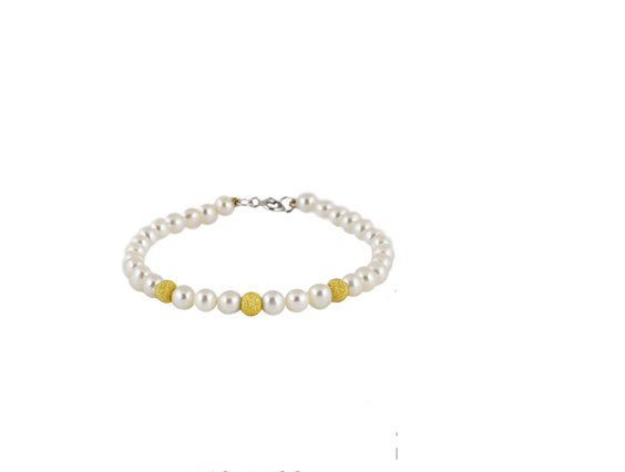 Bracciale con perle freshwater di diametro mm. 5.5-6 e chiusura a moschettone in oro giallo
