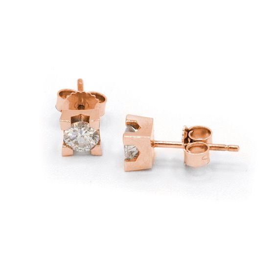 Orecchini in oro rosa 18 kt e 2 diamanti taglio brillante di kt 0.10 in totale
