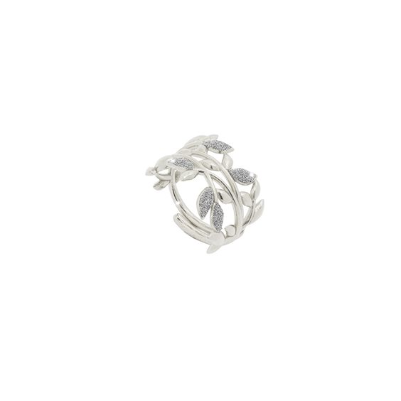 Anello della collezione Jolie Nature in argento 925/°°° e foglie d'ulivo rivestite con micro diamanti. L'anello è disponibile nella mis. 13 ed è leggermente regolabile.