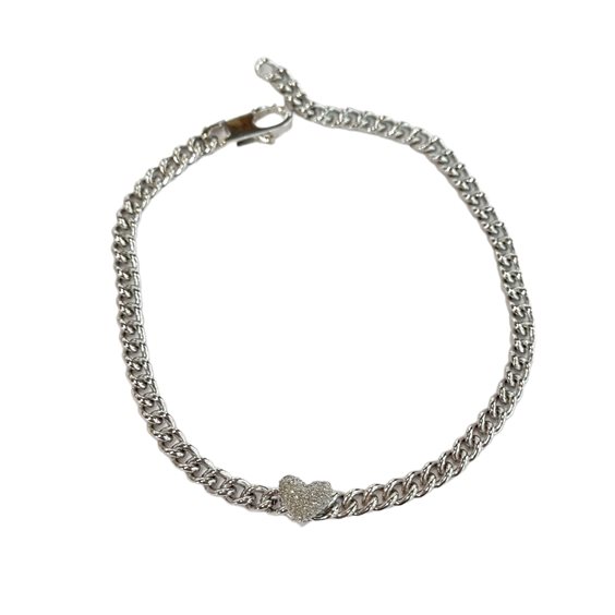 Bracciale in argento laminato in argento con cuore centrale composto da micro diamanti