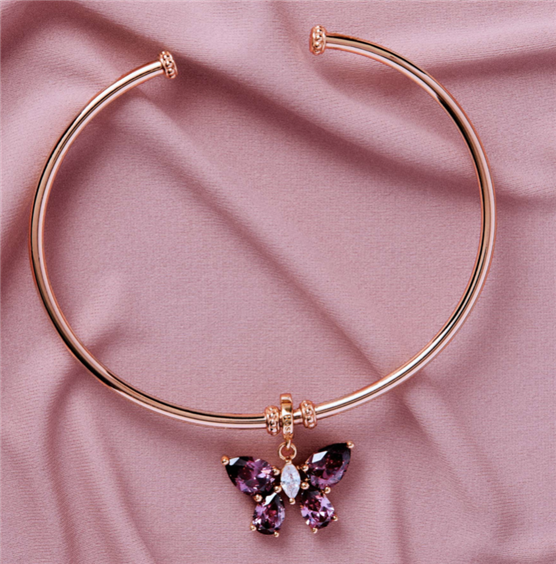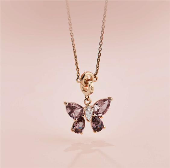 Charm in argento 925‰ a forma di farfalla in edizione limitata per Fondazione Veronesi, placcatura oro rosa, cubic zirconia rosa
