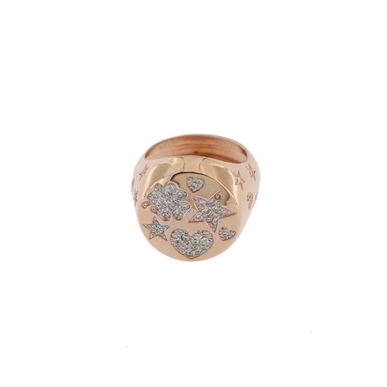ANELLO SCUDO CON ZIRCONI BIANCHI. FINITURA: PLACCATURA ORO ROSA 18KT MATERIALE: ARGENTO 925 MISURA: LANELLO È DOTATO DI UNA MOLLA REGOLATRICE INTERNA
