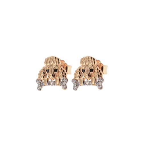 Orecchini a lobo con cagnolino con zirconi. Soggetto: Barboncino Finitura disponibile: Placcatura oro rosa 18kt o placcatura oro giallo 18kt Materiale: Argento 925 Grandezza orecchino: 1-1,1 cm.