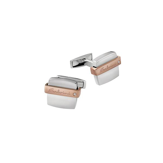 AZZ: COLLEZIONE DI GIOIELLI DALLA FORTE PERSONALITÀ E DAL SOUND INCONFONDIBILE. Linee stilistiche come un'irresistibile melodia si ritrovano nella collezione di gioielli JAZZ. Gemelli in argento dalle forme rotonde e quadrate abbinati a materiali preziosi come la madreperla, onice, lapis e oro rosa, Salvini crea una collezione di gemelli dalla forte personalità e dal sound inconfondibile. Gemelli in oro rosa 9 KT e argento con diamanti ct. 0,01