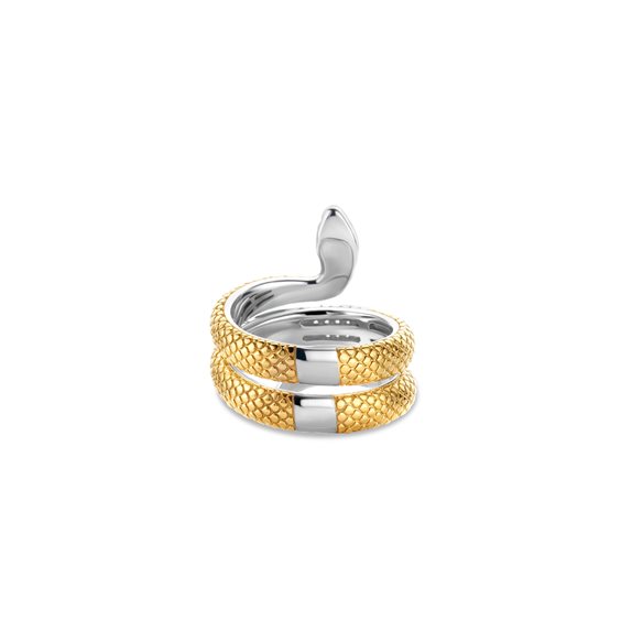 Anello in Argento 925 con elementi laminati in oro e malachite, forma serpente doppio giro.