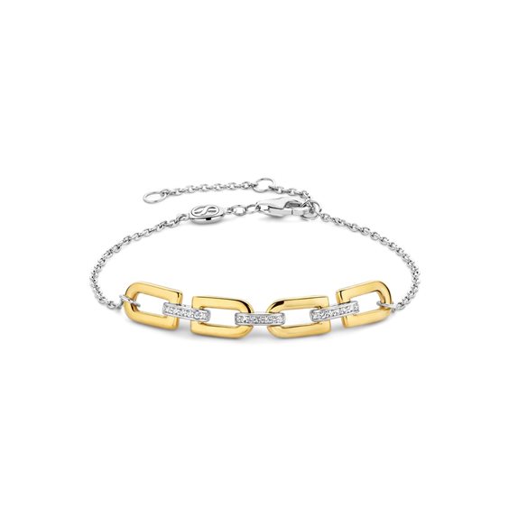Questo bracciale placcato oro TI SENTO 23032ZY presenta un'accattivante combinazione di eleganza classica e stile moderno. Realizzato in argento sterling 925 di prima qualità, il bracciale presenta maglie distintive placcate oro tenute insieme senza soluzione di continuità da maglie ornate di pavé, creando un bagliore luminoso di raffinatezza e glamour. L'abbagliante pavé di zirconi cubici aggiunge un ulteriore strato di lusso, proiettando una brillantezza radiosa a ogni movimento. Meticolosamente realizzato con attenzione ai dettagli, questo bracciale si adatta senza sforzo dal giorno alla notte, rendendolo un accessorio versatile per varie occasioni. Questo non è solo un braccialetto, ma un vero e proprio codice di espressione. Il design regolabile assicura una vestibilità perfetta, offrendo sia comfort che versatilità per qualsiasi dimensione del polso. Esalta il tuo stile con il fascino senza tempo del nostro bracciale a catena placcato oro, dove la fusione di argento sterling e maglie placcate oro aggiunge un tocco di lusso al tuo ensemble quotidiano. La lunghezza standard del bracciale è di 16 cm. Ha un'estensione di 4 cm che consente di indossarlo a 3 lunghezze diverse: 16 cm, 18 cm e 20 cm.