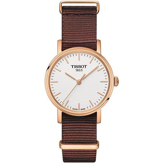 Orologio Solo Tempo Da Donna Di Tissot Della Collezione T-Classic Della Linea Everytim.Nome Orologio: Tissot Everytime Small Nato. Orologio Con Cassa In Acciaio 316 L Con Trattamento Pvd Oro Rosa Di Forma Rotondo Di Dimensioni 30Mm Con Spessore Di 6.15Mm E Distanza Tra Le Anse Di 15Mm.Cassa Con Vetro Zaffiro Antigraffio. Il Quadrante È Di Colore Argento Con Indici. Il Cinturino È Realizzato In Materiale Di Colore Marrone E Con Fibbia Standard. Orologio Swiss Made Con Movimento Svizzero, Al Quarzo E Alimentazione Quarzo. Modello: Eta 902.101. Batteria:Tipo Renata 364. Peso: 28 G. Orologio Impermeabile Fino A 3 Bar (30 Metri/100 Piedi