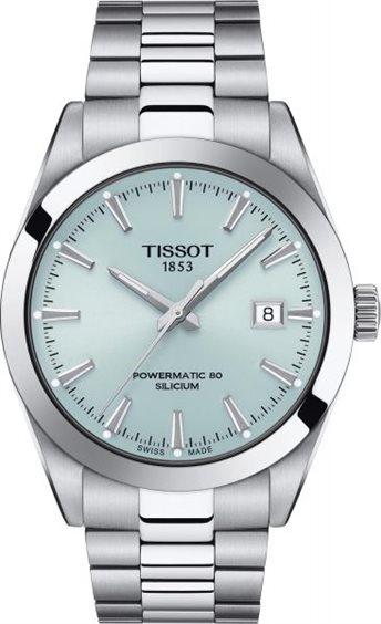 Il Tissot Gentleman è l'accessorio perfetto per l'uso quotidiano, che dona un tocco di colore al tuo stile con il suo quadrante blu ghiaccio. Questo orologio classico ed elegante ha una cassa dal diametro di 40 mm. Le lancette e gli indici satinati e lucidi completano l'aspetto elegante di questo Tissot Gentleman. Questo modello di Tissot è dotato di un movimento Powermatic 80 Swiss Made, vetro zaffiro antigraffio e antiriflesso e cassa in acciaio inossidabile 316L.