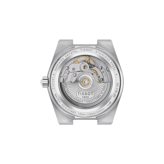 Tissot PRX 35mm Powermatic 80, un perfetto equilibrio tra fascino senza tempo e artigianato moderno. Questo orologio da 35 mm vanta una cassa in acciaio di alta qualità e un accattivante quadrante blu, ispirato al suo famoso predecessore del 1978. Il caratteristico motivo del quadrante waffle aggiunge un ulteriore livello di eleganza al modello automatico. Resistente all'acqua fino a 100 metri e dotato di spirale Nivachron™, il PRX è la scelta ideale per gli esperti di stile. Il bracciale in acciaio satinato con chiusura déployante a tripla lama in acciaio garantisce comfort per tutto il giorno . Distinguiti con il Tissot PRX 35mm Powermatic 80 in blu. Diametro:35 mm Cinturino intercambiabile a sgancio rapido Fino a 80 ore di riserva di carica Cassa in acciaio inossidabile 316L Fondello trasparente Movimento automatico svizzero Vetro zaffiro antigraffio con rivestimento antiriflesso Quadrante in madreperla INFORMAZIONI SULL'OROLOGIO SKU T1372071104100 Peso (g) 104 Collezione T-Classic Impermeabilità Impermeabile fino a 10 bar (100 metri/330 piedi) CASSA E VETRO Spessore 10.9 Opzioni della cassa Fondello a vista Lunghezza 35.00 Larghezza 35.00 Materiale della cassa Cassa in acciaio inossidabile 316L Anse 11.00 Forma della cassa a forma tonneau Vetro Vetro zaffiro antigraffio con trattamento antiriflesso MOVIMENTO Energia automatico Modello POWERMATIC 80.111 Movimento Svizzero, automatico Calibro 11 1/2''' Quadrante HMsD Calibro Diametro (mm) 25,6 Riserva di carica riserva di carica fino a 80 ore Funzioni spirale in Nivachron QUADRANTE Colore del quadrante MADREPERLA BIANCA Indici indici Luminescent material on dial Superluminova Luminescent material on the hands Superluminova CINTURINO Colore cinturino Grigio Riferimento del cinturino/catena T605047605 Dettagli del cinturino Acciaio inossidabile Fibbia bracciale intercambiabile a sgancio rapido, chiusura a farfalla con pulsanti