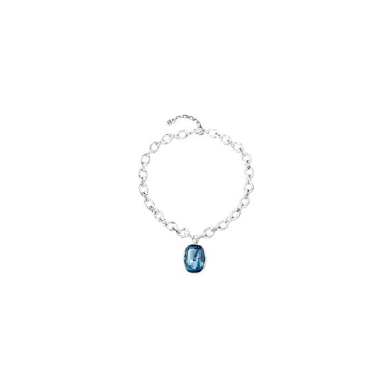 COLLANA UNO DE 50 - LUGHT IT UP Collana girocollo con catena di anelli intrecciati in metallo bagnato nell’argento e rifiniti con un cristallo grande Swarowski del colore Denim Blue. Lunghezza regolabile. Un gioiello di UNOde50, prodotto in Spagna secondo un processo interamente artigianale.
